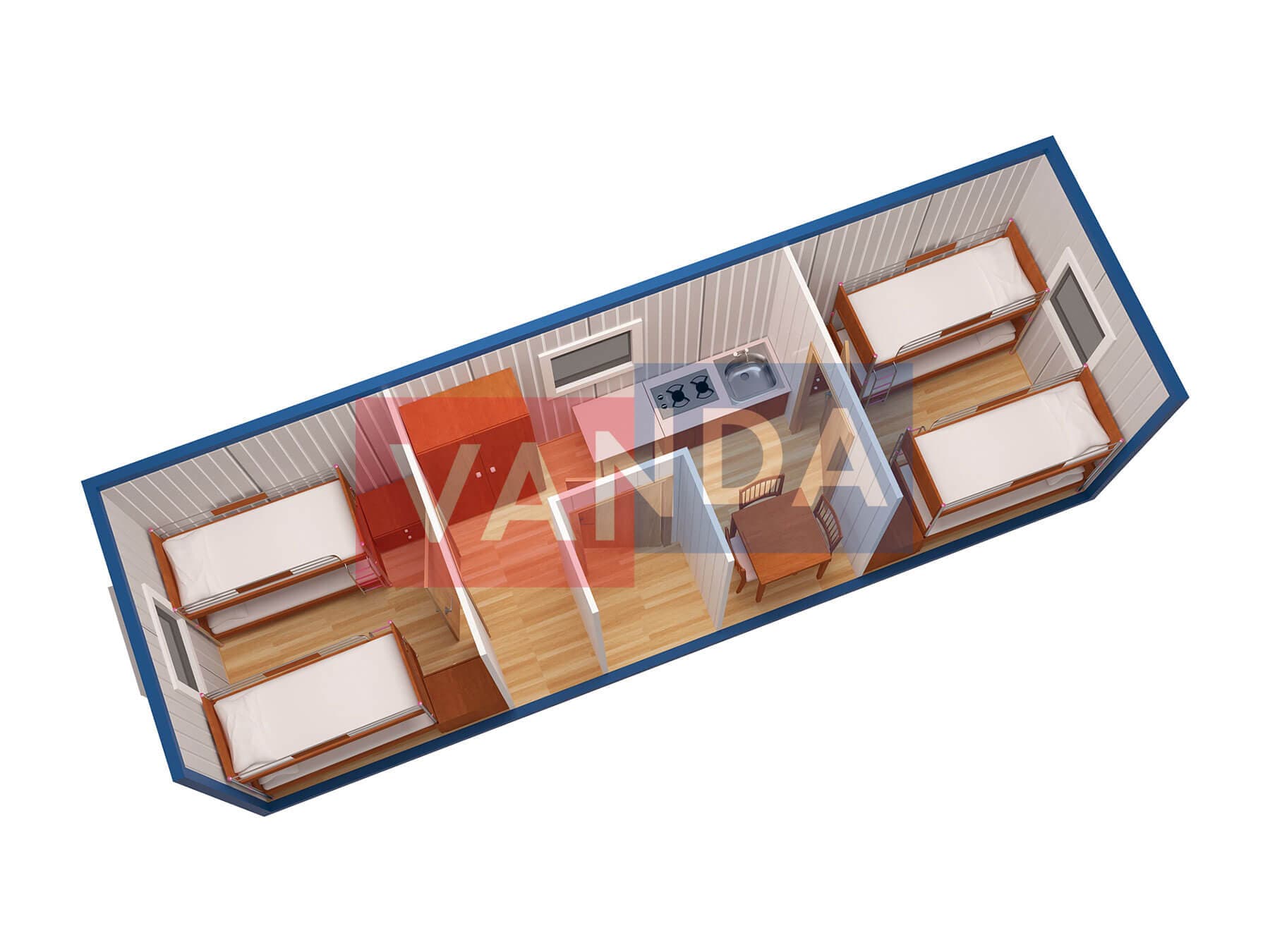 Металлическая бытовка с кухней в тамбуре 5,85 x 2,4 - Оргалит ДВП